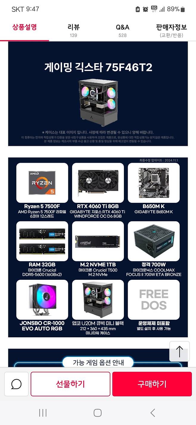 pc 새로 살생각으로 알아보던중 11월 초 99만원 특가진행하여 구매하게 되었습니다
