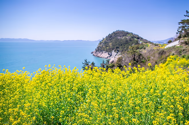 봄이 되면 가장 먼저 떠오르는 거제도는 화사한 봄꽃과 푸른 바다가 한데 어우러져 더욱 아름다워지는 곳이에요. 특히 외도 보타니아로 향하는 유람선을 타는 순간부터 설렘이 시작되는데, 탁 트인 바다 위를 달리며 한려수도의 수려한 풍경을 함께 즐길 수 있어요. 유채꽃이 만개한 시기에 방문하면 노란 꽃들과 청량한 바다의 이국적인 조화를 만끽할 수 있답니다.