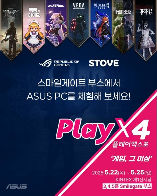 에이수스는 5월 22일부터 25일까지 일산 킨텍스 제1전시장에서 열리는 '2025 플레이엑스포'에 참가한다고 밝혔다.