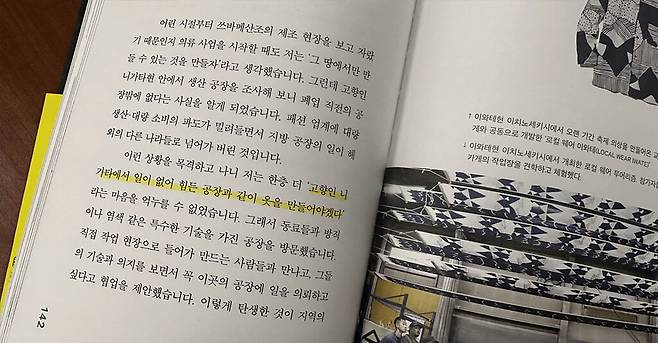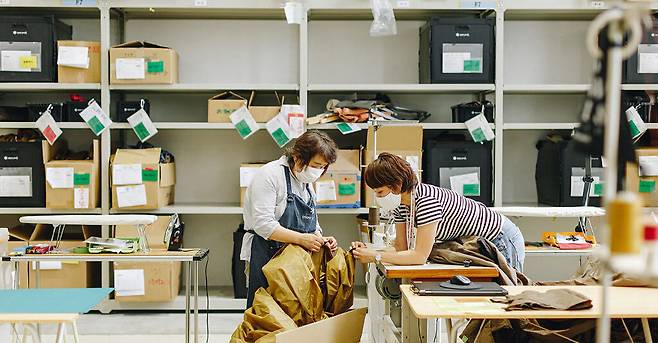그래서 지역 사회와 상생하기 위한 활동도 많이 진행하고 있는데요. 일이 없어서 폐업 직전인 공장과 협력해 현지에서 나는 자원으로 만들 수 있는 '로컬 웨어'를 개발하는 한편, 로컬 웨어 생산 현장을 체험하는 여행인 '로컬 웨어 투어리즘'을 만들어 어려운 지역 상황을 함께 극복해 나가려고 노력해요.
