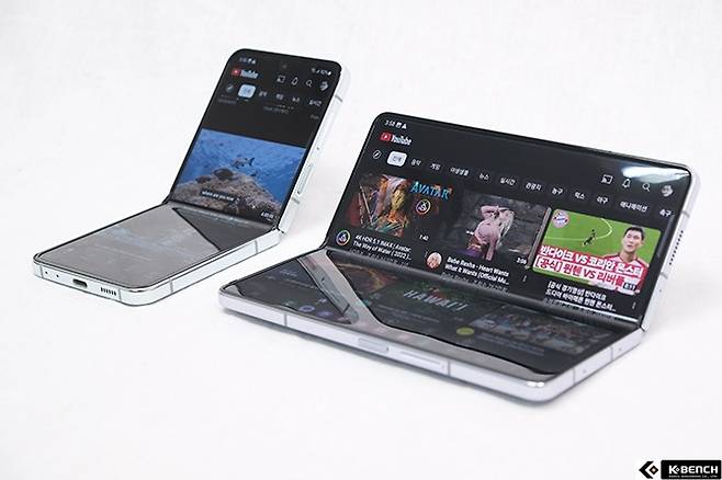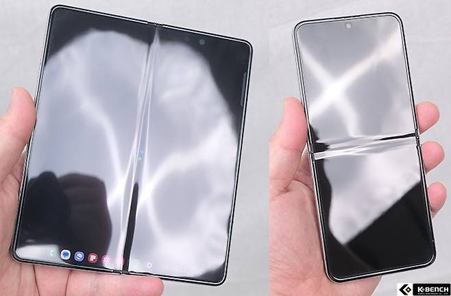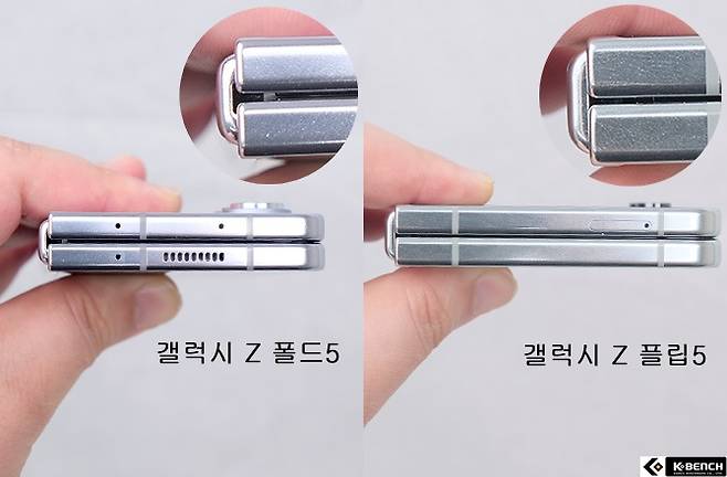 특히, 플립5는 힌지 부분과 바깥쪽 접힌 두께 차이가 거의 없을 만큼 거의 완벽하게 반으로 접힌 모습이다. 폴드5는 여전히 힌지 부분이 미세하게 더 벌어졌지만 이 정도면 진짜 많이 좋아졌다는 말이 나올 정도다.