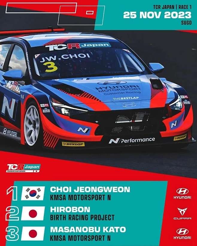 특히 최종전에서는 일본 드라이버 카토 마사노부가 최정원 선수의 모습을 보고 엘란트라 N TCR 경주차로 출전하고 싶다는 뜻까지 밝혀와 3위의 좋은 성적까지 거두면서, 결국 최종전 1, 3위를 현대차 엘란트라 N TCR이 시상대를 휩쓰는 기염을 토했다.