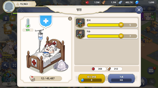 이런류의 게임에서 가장 큰 허들은 시간이다. 건물 업그레이드에도 병력 모집에도 정해진 시간을 보내야 한다. 초반에야 시간이 짧지만 이내 1, 2시간은 기본이고 하루 이상 걸리게 된다. 가속 아이템이 있다면 그나마 낫지만 아이템도 다 떨어지면 그때부터는 시작되는 시간과의 싸움은 상당한 인내를 요구한다.