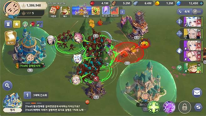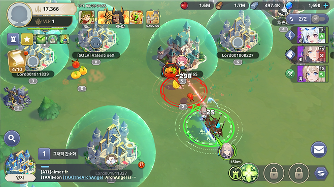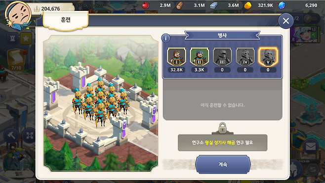 가이드도 직관적이고 세심하다. 장인의 집을 따로 둬서 건물을 업그레이드할 수 있는 일종의 일꾼들의 상태가 어떠한 지 직관적으로 체크할 수 있다. 더불어 지금 당장 수행가능한 일들 즉 완료해야 할 업그레이드나 훈련을 마친 병사 등에 대한 정보를 성 앞 책을 들고 있는 소녀가 아이콘으로 표시해준다. 유저는 이 아이콘을 터치하면 해당 건물로 이동할 수 있다. 초반에야 영지의 규모가 작아 한눈에 해야 할 일이 보이지만 영지가 커지고 건물이 많아지자 이런 편의기능이 상당히 유용했다.
