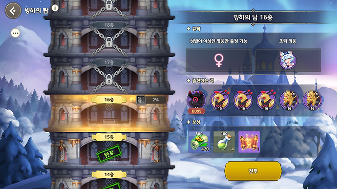 그래서 아쉬운 점은 새로운 지역이 열렸을 때 스토리 전투가 1개 내지 2개 밖에 없다는 점이다. 지역이 열렸을 때 더 많은 이벤트와 전투를 할 수 있다면 더 많은 시간을 게임을 하면서 보낼 수 있었을 것이다. 하지만 그랜드크로스는 새로운 지역이 열리거나 고난의 탑이 있어도 한 시간 아니 30분을 때우기도 어렵다.