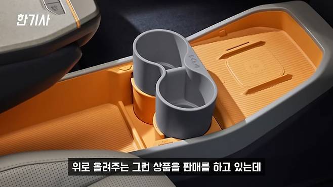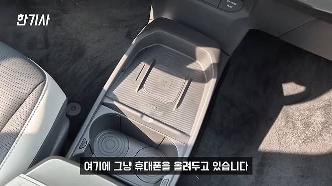 또 그 외에 컵홀더 위치가 너무 바닥으로 내려가 있습니다. 그래서 커피 같은 거를 사서 운전하면서 섭취를 할 때 보통은 팔이 살짝만 내려가는 정도의 위치에 있는데 이게 너무 밑으로 내려가 있다 보니까 운전하면서 팔을 뻗기에는 좀 위험하다는 생각이 들더라고요. 기아에서도 액세서리로 컵홀더를 연장해서 위로 올려주는 상품을 판매를 하고 있는데, 제조사에서도 아마 인지를 하고 있는 것 같은데도 이렇게 나왔다는 게 조금 아쉽게 느껴지긴 합니다.