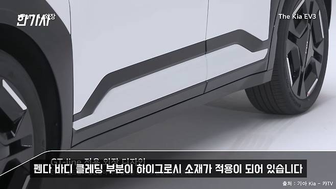 앞/뒤 펜더 클래딩 부분이 바퀴가 굴러가면서 물도 튀고 아니면 이물질도 많이 묻는 그런 부분인데, 이 부분을 하이그로시 소재를 적용을 해서 차량을 만든 게 좀 많이 아쉽습니다. 차라리 EV6 GT 라인처럼 이 펜더 바디 클레딩 부분도 차량 실제 색상과 똑같이 도색을 해줬으면 차라리 더 낫지 않았을까 싶어요.
