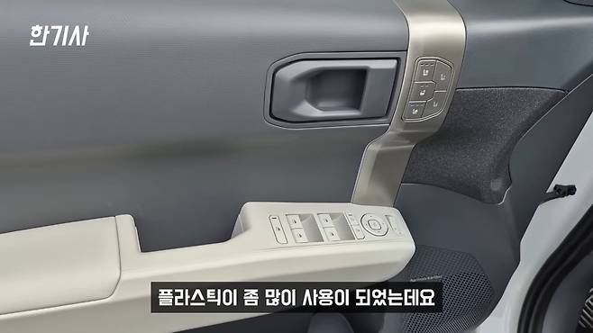 그리고 차량 실내 소재가 차량 가격을 생각했을 때 많이 아쉽습니다. 대시보드나 문 쪽에 플라스틱이 좀 많이 사용이 되었는데요. 일전에 타던 K5 3세대 하이브리드 같은 경우에는 대시보드는 우레탄, 문짝도 대부분 우레탄이 적용이 되어 있어서 만졌을 때 약간 푹신푹신하게 들어가는 느낌이 생각보다 괜찮았는데, 이 차량은 물론 소형 SUV이긴 하지만 기본 시작 가격이 거의 3,000만 원 이상부터 시작하고 제 차량도 4,200만 원을 주고 구매했는데요. 차량 가격을 생각했을 때는 플라스틱을 사용한 범위가 좀 많아서 이 부분은 좀 상당히 아쉽게 느껴집니다.