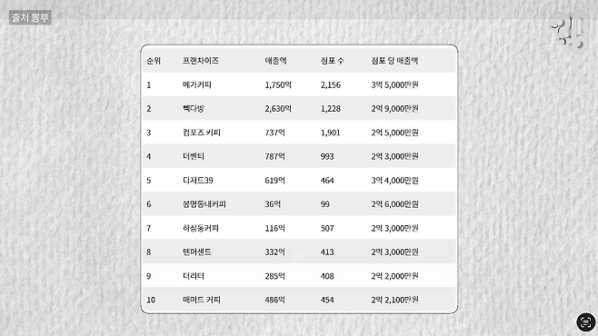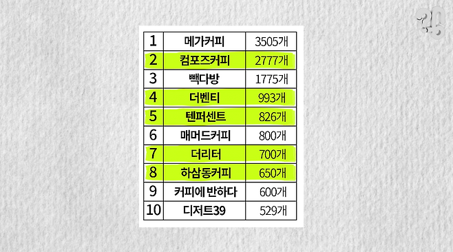 이 5개, 그러니까 상위 10개 중 절반이 부산에서 시작된 건 맞고, 본사 역시 작년에 필리핀기업에 인수된 컴포즈커피를 제외하면 부산이었다.