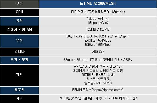 ipTIME AX2002MESH는 와이파이 음영지역 해결을 위한 이지메시를 간편하게 구현할 수 있도록 디자인된 제품으로, 보급형 시장을 노려 6만원대 가격에 나온 만큼 고성능을 추구하는 사용자에게는 어울리지 않는다.