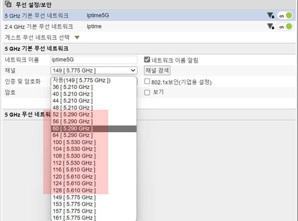 5GHz 주파수 대에서 DFS 채널은 52번부터 140번대, 주파수로는 5250MHz ~ 5710MHz까지가 쓰인다. 일반적인 보급형 제품은 DFS 채널을 지원하지 않는 경우가 흔하지만, ipTIME AX2002MESH는 6만원 대 보급형 제품임에도 DFS 채널을 지원한다.