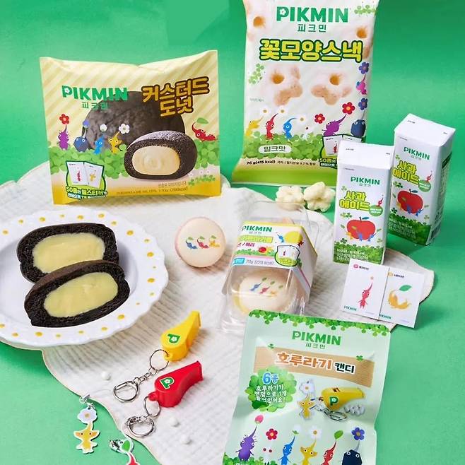 CU가 피크민 콜라보 제품을 출시했다. 커스터드 도넛, 요거트마카롱, 꽃모양스낵, 호루라기캔디, 사과에이드 등 5종으로 커스터드 도넛과 요거트 마카롱, 꽃모양스낵에는 띠부씰이 포함되어 있다. 띠부씰은 총 50종. 띠부씰을 모으기 위한 여정을 떠나볼까?