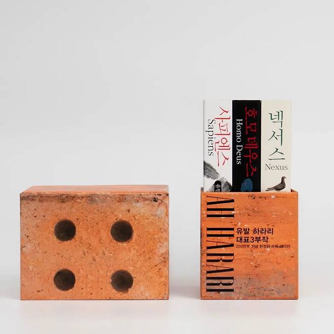 출판사 김영사가 유발 하라리 대표 3부작을 묶어 벽돌을 닮은 ‘브릭 에디션’을 출간했다. 200만 부 돌파 기념 한정판으로 <사피엔스>, <호모 데우스>, <넥서스> 3가지 작품을 묶었다고. 워낙 두꺼운 책들이라 흔히 ‘벽돌책’이라고 불리곤 했는데 아예 벽돌처럼 만들어 버린 기획자의 센스가 대단하다. 책 3권과 우드 향 샤쉐가 포함된 구성. 브릭 에디션의 가격은 8만 1,400원으로 교보문고(https://tinyurl.com/4vsyt486) 등 온라인 서점에서 구매할 수 있다.