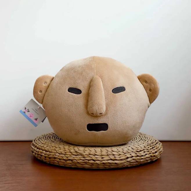 국립진주박물관의 대표 유물은 ‘사람 머리 토제품’이다. 이 유물을 캐릭터로 만든 것이 바로 ‘두기우기’. 약간 치켜세워진 눈과 사각형으로 벌어진 입이 유물과 똑닮았다. 화난 표정이지만 보고 있으면 오히려 마음이 평온해진다. 이름은 머리 두, 즐길 기, 복 우, 기원 기로 ‘관람객과 즐기면서 복을 기원하는 사람 머리 모양 토제품’이라는 뜻이라고. 인형 열쇠고리와 쿠션 담요 2종으로 뮷즈샵(https://tinyurl.com/v4bcmd3m)에서 구매할 수 있다.