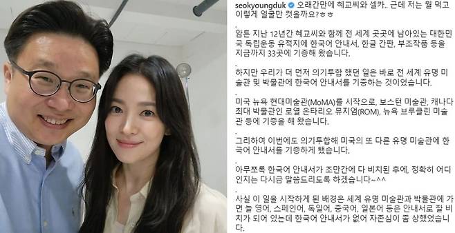 당시 송혜교는 서 교수와 함께 꾸준히 해외 독립운동 유적지 후원 활동을 이어가고 있던 중이었다.