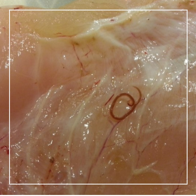 아니사키스는 흰색 실 모양으로, 길이는 약 2~3cm 정도입니다. 연어를 먹기 전에 꼼꼼히 확인하는 습관을 들이세요.