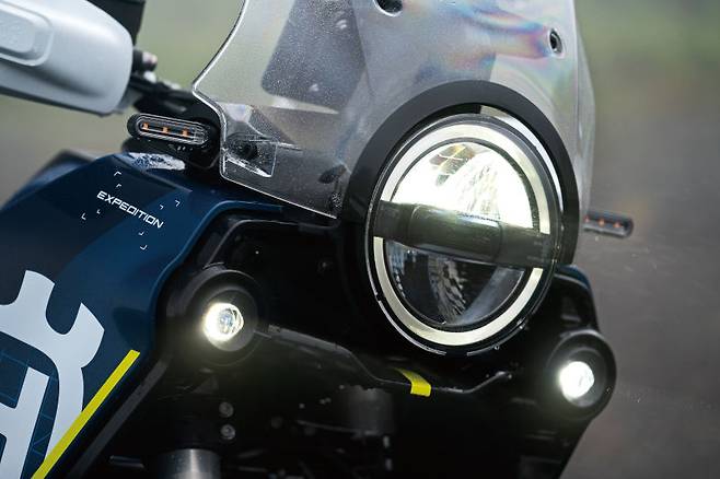 허스크바나 노든 901 익스페디션(이하 익스페디션)은 기본 모델인 노든 901에 오프로드 주행 및 장거리 여행 환경에 맞춰 서스펜션을 업그레이드하고 각종 옵션 파츠들을 더한 모델이다. 처음 공개 당시 온라인으로 일반 스튜디오 컷을 찾으려 했는데 단 한 장도 옵션이 제외된 모델 컷을 찾을 수 없었던 이유다. 관계자에 따르면 익스페디션은 열선 그립, 열선 시트, 롱 윈드 스크린, 사이드 백 세트, 센터 스탠드, 헤비 듀티 스키드 플레이트 등이 모두 장착된 상태로 수입된다고 한다. 말 그대로 이 모든 옵션이 포함된 모델이 ‘기본 사양’인 것이다. 전체적인 디자인은 일반 모델과 다르지 않다. 하지만, 새로운 그래픽과 유광 컬러를 조합하여 더욱 선명한 볼륨감과 고급스러움을 자아낸다. 브랜드 컬러인 블루를 적극적으로 사용했고 허스크바나 로고를 차체 양쪽 사이드에 배치시켰다. 핸드 가드와 리어 사이드 페어링은 화이트로 매치해 깔끔하게 마무리했다. 앞서 말했듯, 일반 모델과 달리 더 높은 위치까지 커버하는 윈드 스크린이 장착되었고 원형 LED 헤드라이트와 LED 안개등은 부드러운 디자인 분위기를 헤치지 않고 적재적소에 탑재됐다. 새롭게 장착된 강성 높은 알루미늄 스키드 플레이트는 강한 충격에도 보호성능이 보장되고 측면에 구멍을 뚫어 오바이트 호스가 통과하도록 마련한 센스가 돋보인다. 장거리 주행 중 여러 상황을 해결하기 위해 센터 스탠드가 추가되었고 새로운 사이드 백은 36리터의 용량으로 다양한 소지품을 수납할 수 있다.