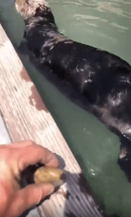 사람이 가까이 다가와 그 돌을 톡톡 두드리며 관심을 보이자, 수달은 가만히 지켜봅니다. 돌을 빼앗길까 걱정하는 듯한 긴장감도 없고, 무언가 확인하려는 듯한 호기심이 깃든 모습입니다. 그러다 천천히, 아주 신중한 동작으로 다시 손을 뻗어 돌을 집어 듭니다. 성급하게 빼앗아가는 것이 아니라, ‘이제 다시 내 차례야’라는 듯한 태도가 너무나 사랑스럽습니다.