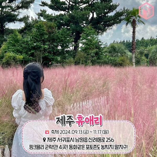 오늘 여행톡톡은 핑크빛 가을 추억을 남길 수 있는 전국의 핑크뮬리 명소 9곳을 선정해 소개합니다. 핑크뮬리 명소에서 진행되는 핑크뮬리 축제 정보도 함께 알려드리니 올 가을 핑크뮬리 군락지에서 인생사진을 남겨보세요!