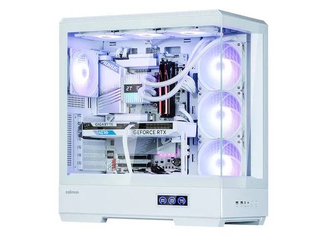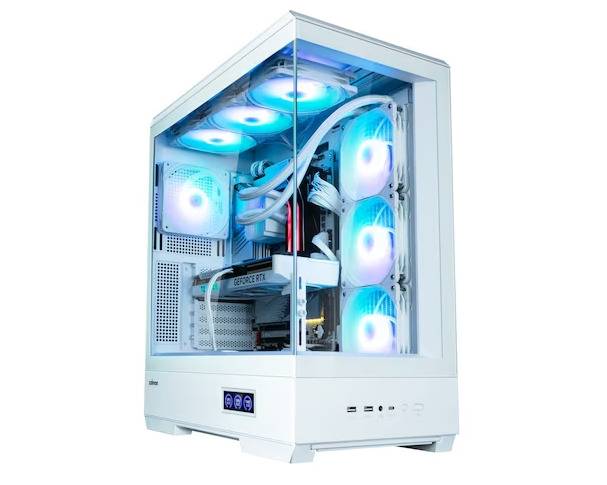케이스로는 미들타워 규격의 '잘만 P50 DS'를 사용했다. 파노라믹 강화유리와 디스플레이 패널을 적용한 본 제품은 화이트 디자인까지 갖춰 품질과 감성을 모두 만족시키는 제품으로 평가 받고 있다. 전면과 측면에 프레임리스 강화유리를 적용해 내부 시스템을 훤히 볼 수 있으며, 특히 CPU 및 GPU 온도, 현재 시간을 실시간으로 표시하는 디스플레이 패널로 차별성을 보여준다.