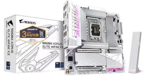 메인보드로는 M-ATX 타입의 'GIGABYTE B860M AORUS ELITE WIFI6E ICE 피씨디렉트'를 사용했다. 높은 안정성과 확장성, 화이트 감성까지 갖춘 본 제품은 게임 및 콘텐츠 제작 등 다양한 용도로 활용이 가능하다. 12+1+2 페이즈의 디지털 트윈 VRM 전원부는 페이즈당 60A의 전류를 안정적으로 공급하며, AI 기반의 오버클럭 기술인 AI SNATCH와 HyperTune BIOS가 적용돼 초보자도 간편하게 성능을 높일 수 있다.