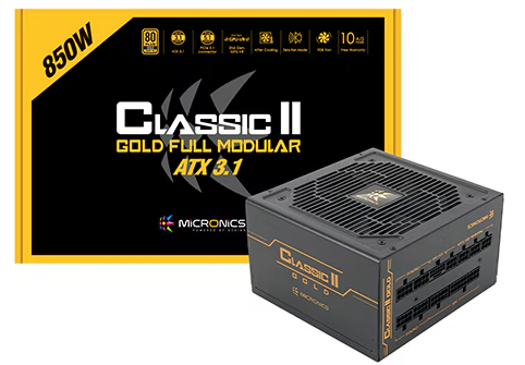 파워서플라이로는 정격 850W 용량의 '마이크로닉스 Classic II 850W 80PLUS골드 풀모듈러 ATX3.1'을 사용했다. 본 제품은 80플러스 골드 인증을 획득해 높은 효율을 자랑할 뿐만 아니라 마이크로닉스만의 독자적인 기술이 적용돼 안정성과 내구성까지 확실히 만족시킨다.