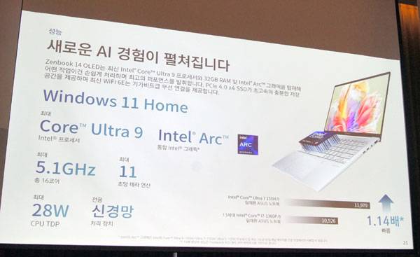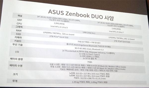 에이수스는 다양한 용도와 고객을 위해 젠북 듀오 외에도 폭 넓은 젠북 제품군을 선보이고 있는데, 이번 행사에서는 14.9mm 두께와 1.28kg 무게의 젠북 14 OLED, 10mm 두께에 1kg 무게의 젠북 S 13 OLED도 함께 공개했다. 이들은 각각 코어 울트라 9 및 코어 울트라 7 프로세서를 탑재하고 있다.
