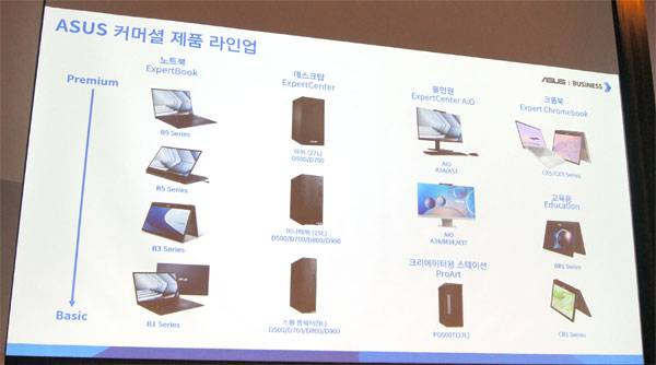 에이수스 국내 커머셜 사업에는 2019년 진출해 어떤 수요에도 대응할 수 있도록 라인업 갖추고 빠르게 확장해 나가고 있으며, 이번 행사에서는 세계에서 가장 가벼운 14" 비즈니스 노트북 ExpertBook B9 OLED, 엔터프라이즈를 위한 14인치 경량 크롬북 'Expert Chromebook Plus CX54', 공간 활용에 최적화된 올인온 시스템인 ExpertCenter M3가 소개되었다.