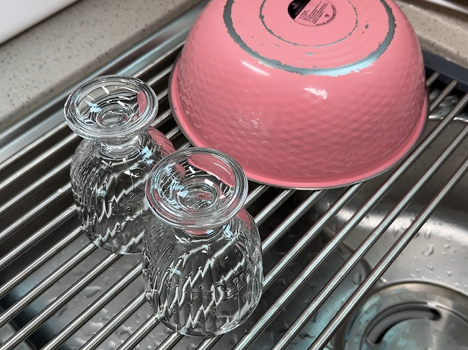 집에 있는 식기건조대는 평상시에는 아주 쾌적합니다. 그런데 손님이 많이 온 경우 평상시보다 더 많은 그릇을 건조하기에는 역부족입니다. 이때 간단하게 해결할 수 있는 아이템이 있습니다.