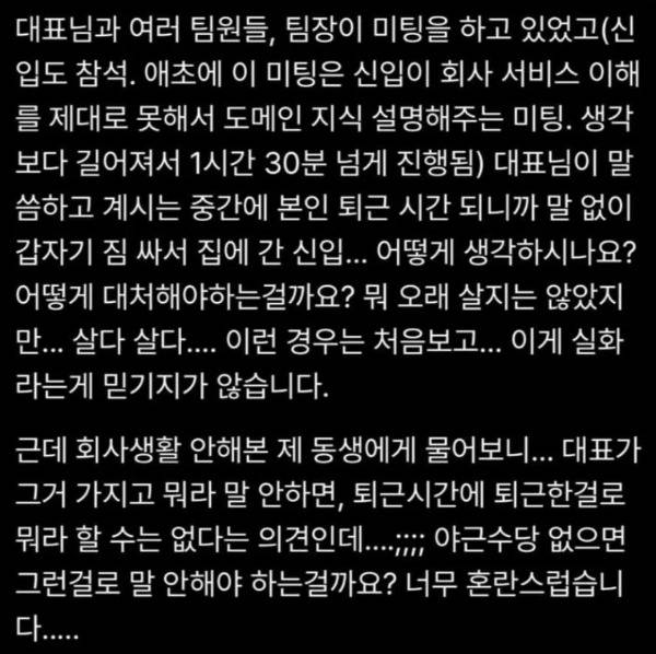 미팅 도중 퇴근시간이라고 말 없이 집에 간 신입