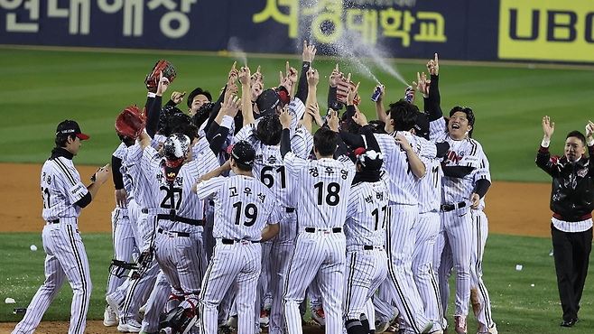 ํ ์ฌ์ค์ ํ์ , ๊ทธ๋ฆฌ๊ณ ์จ์ด์ท๊น์ง ๋ชจ๋ ์ฐ์น ํํ์ด์ ์ฑ๊ณตํ ๊ฐ์ด๋ฐ KBO์ LGํธ์์ค๋ 29๋ ๋ง์ ์ฐ์น์ ์ฐจ์งํ๋ฉฐ ํ์ ํ์์ต๋๋ค. ์ข์ ๊น์ค์, ์ฐ์ ์ผ์ด์ ์บ๋ฆฌ๋ฅผ ์ ์ธํ๊ณ ๋ ์ ๋ฐ์ง์ด ๋ถ์ยท๋ถ์ง์ผ๋ก ์ ์ญํ ์ ๋ชปํ๋ ์ํฉ์์ ์ค์ฌํ์ ์ ๊ฐ์ฑ์ด ์๋ฆฌ์ฆ๋ฅผ ์ง๋ฐฐํ๋๋ฐ์. ์ง๋ 8์ผ 2์ฐจ์ (๋ฐ๋์ ๊ฒฐ์น ํฌ๋ฐํ๋ฐ), 10์ผ 3์ฐจ์ (์ค์งํ ๊ฒฐ์น ์ค๋ฆฌ๋ฐํ๋ฐ)์์ ์ํํ ์ญ์ ์น์ ์์์ผ๋ก 4, 5์ฐจ์ ๋ ํ์ ์ ํ์ฝ์ผ๋ก ์น๋ฆฌํ ํธ์์ค๋ 1994๋ ํตํฉ ์ฐ์น ์ดํ 21์ธ๊ธฐ ์ฒซ ์ฐ์น์ ๊ธฐ์จ์ ๋ง๋ฝํ์ฃ . โ๊ด๋ จ๊ธฐ์ฌ ๋๋ถ์ ์ง๋ 1994๋ ์ฐ์น ์งํ ๊ตฌ๋จ์์ ๋ค์ ์ฐ์น์ ๊ธฐ๋ ํ๊ธฐ ์ํด ๋ฐ๋ดํ ๋ด๊ธ์ฃผ๋ 2017๋ ์ ์ฌ๋ผ์ ธ๋ฒ๋ฆฐ ์ผ๋ ์์์ต๋๋ค. ๊ทธ๋์ ํฌ๋ค์ '(๋ด๊ธ์ฃผ๋) ๋๋ฌด ์ค๋ ๋ผ ์์ด๊ฐ ๋๋ค'๋ ์์กฐ ์์ธ ๋๋ด๋ ํ๋๋ฐ์. โ๊ด๋ จ๊ธฐ์ฌ ์๊ณ ํ ๊ณ ๊ตฌ๋ณธ๋ฌด ํ์ฅ์ด ํ๊ตญ์๋ฆฌ์ฆ MVP์๊ฒ ์ฃผ๊ฒ ๋ค๊ณ ํด์ธ์ถ์ฅ๊ธธ์์ ์ฌ์จ ๋กค๋ ์ค ์๊ณ๋ 5๊ฒฝ๊ธฐ ํ์จ 0.316(19ํ์ 6์ํ) 3ํ๋ฐ 8ํ์ ์ผ๋ก ํ์ฝํ ์ ๊ฒฉ์ ์ค์งํ์ด ์ฃผ์ธ์ด ๋์๋๋ฐ์. ์ค์งํ ์ ์๋ ์ด ์๊ณ๋ฅผ ๊ตฌ๊ด๋ชจ ๊ตฌ๋จ์ฃผ์๊ฒ ์ฃผ๊ณ ๋ค๋ฅธ ์ ๋ฌผ์ ๋ฐ๊ฒ ๋ค๊ณ ๋ฐํ๊ธฐ๋ ํ์ต๋๋ค. โ๊ด๋ จ๊ธฐ์ฌ