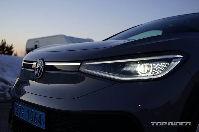 전면부 디자인은 폭스바겐의 새로운 패밀리룩이다. 범퍼 하단부의 디자인을 ID.4와 차별화해 스포티함을 더했다. ID.5의 가장 큰 장점 중 하나는 IQ.라이트로 불리는 LED 매트릭스 헤드램프다. 운전자가 다가가는 경우 상하좌우로 움직이는 세레머니와 함께 야간 주행시 영리하게 동작한다.