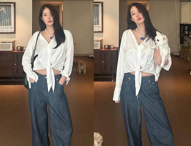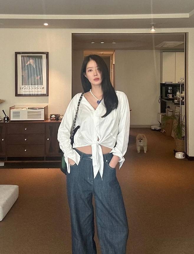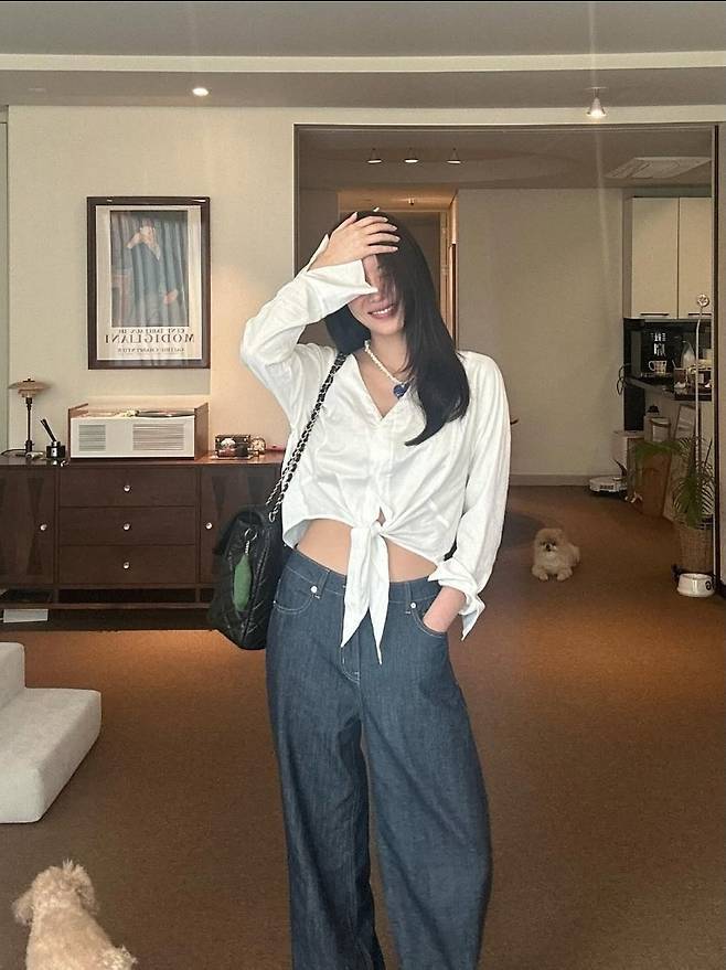 임수향은 내추럴하게 묶은 화이트 셔츠에 와이드 데님 팬츠를 매치해 집에서도 스타일을 포기하지 않는 센스를 그대로 보여줬습니다.