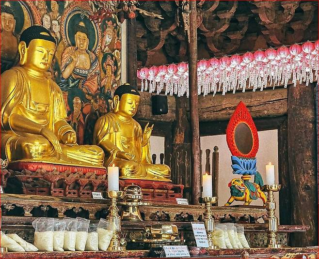 대웅보전: 조선시대 중기에 재건된 목조건물로, 웅장하면서도 따뜻한 목조 건축미를 느낄 수 있습니다.