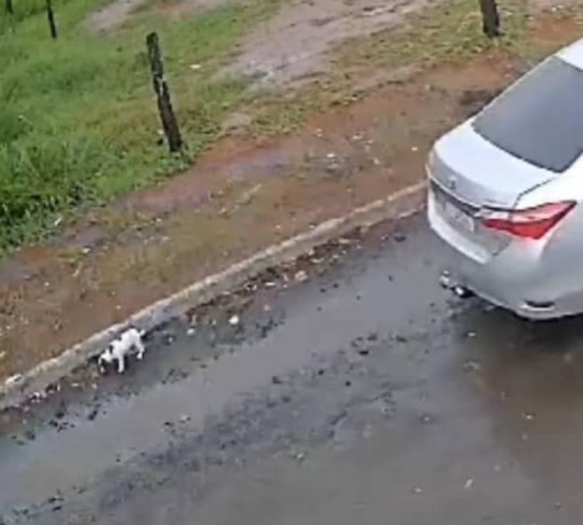 차량 운전자는 아무런 미련도 없는 듯 문을 닫고 그대로 출발했는데요. 그 순간 강아지는 비 오는 거리 한가운데 서서 떠나가는 차를 멍하니 바라볼 뿐이었습니다.