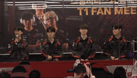 팬미팅은 지난 8일 T1 베이스캠프에서 진행됐다. 이 자리에는 T1 소속 선수 '도란' 최현준, '오너' 문현준, '페이커' 이상혁, '구마유시' 이민형이 참석했다.