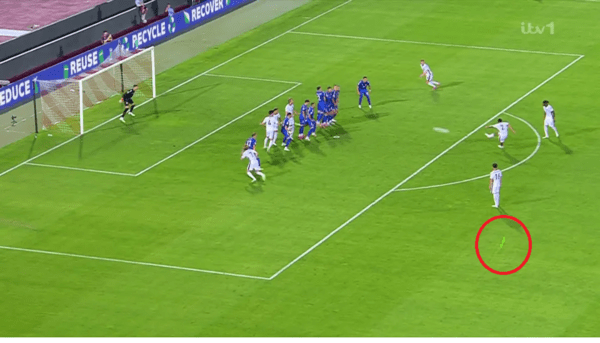 콘사가 공을 몰고 가던 중 이를 눈에 맞아 움찔했으며, 리스 제임스가 프리킥을 차는 순간에도 레이저를 비췄다.