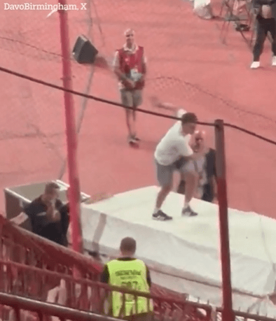 설상가상 흥분을 참지 못한 한 세르비아 팬이 잉글랜드 원정 응원석 쪽으로 진입하기 위해 비계 구조물에 올라타 안쪽으로 들어가기 시작했다. 다행히 경기장 보안 요원들이 그를 에워쌌고, 금세 진압에 성공했다.