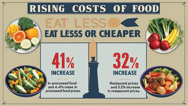 최근 채소·과일 등 농산물 물가가 폭등하고, 가공식품과 외식 물가도 크게 오르고 있어요. 특히, 고환율로 인해 수입 원재료 가격이 상승하면서 가공식품 물가는 4.1% 상승했으며, 외식 물가도 3.2% 오르며 최대 상승 폭을 기록했어요. 이래서 소비자들이 "덜 먹거나 싼 것 먹어요"라는 말이 유행하고 있죠.