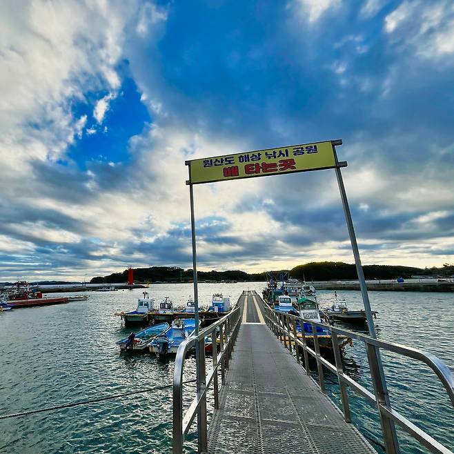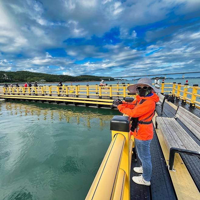 선촌항에서 5분 정도 배를 타고 이동합니다.