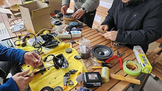 이걸 국산 가성비 스피커에 문도로프 콘덴서를 이식해 앞열 스피커를 모두 교체했습니다.