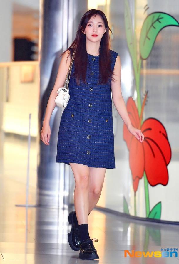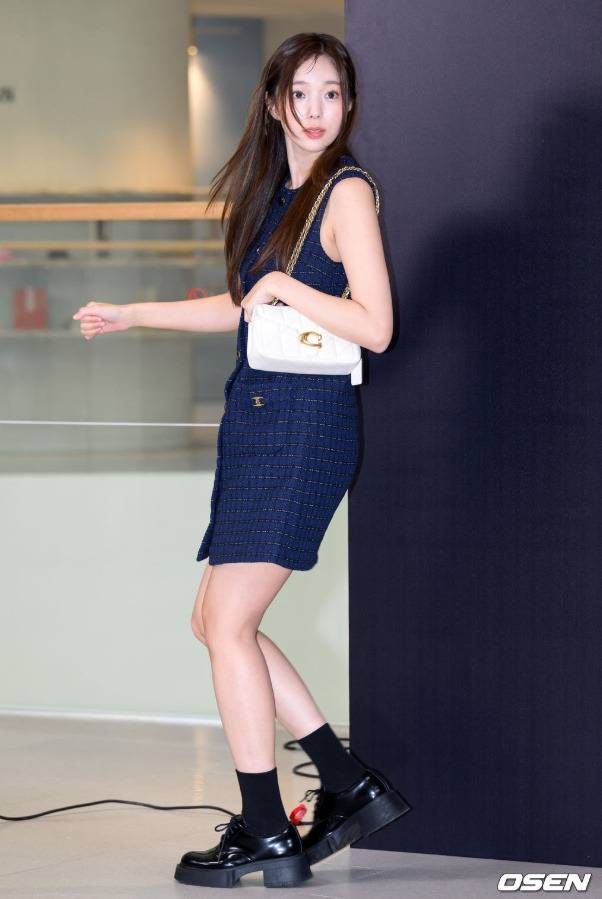 먼저 시선을 사로잡은 것은 바로 단아하면서도 세련된 네이비 컬러의 트위드 원피스였습니다. 트위드 소재는 자칫하면 올드해 보일 수 있지만, 채수빈이 선택한 아이템은 민소매 디자인으로 시원하면서도 여성스러운 팔 라인을 강조해 전혀 다른 느낌을 주었죠. 클래식한 소재에 모던한 실루엣을 더해 고급스러움을 극대화한 것입니다. 특히 원피스에 달린 골드 버튼 디테일은 밋밋할 수 있는 네이비 컬러에 화사한 포인트를 더하며 럭셔리한 무드를 완성했습니다. 이 원피스 하나만으로도 ‘꾸민 듯 안 꾸민 듯’ 자연스러우면서도 모든 시선을 집중시키는 힘이 있었어요. 남성들이 선호하는 청순하면서도 지적인 이미지를 완벽하게 구현한, 그야말로 ‘신의 한 수’ 같은 아이템 선택이었습니다.