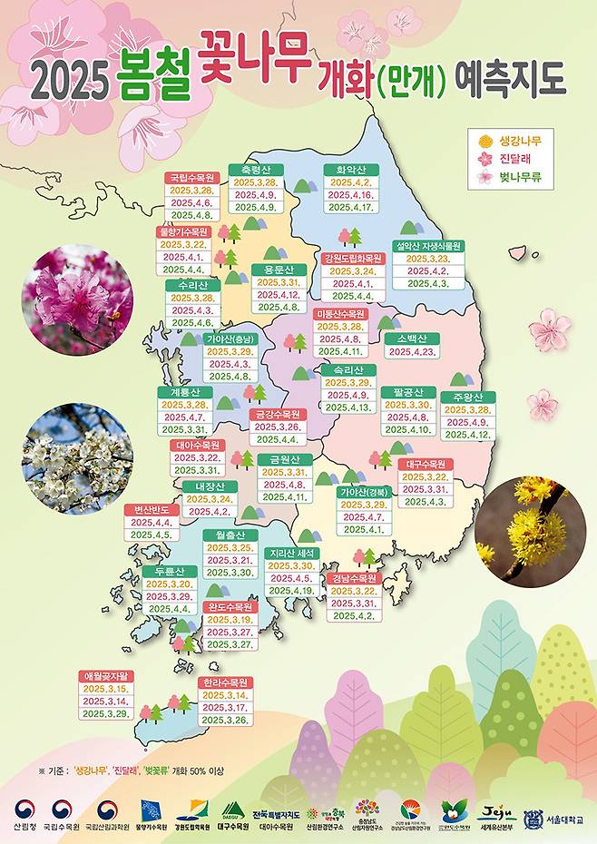 -산림청이 발표한 전국 봄 꽃나무 만개 예측지도