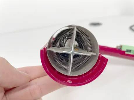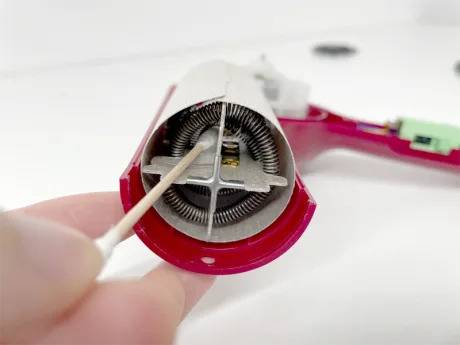 먼지흡입망의 먼지를 다 제거했는데도 타는 냄새가 계속 난다면, 드라이어 안쪽의 히터를 점검해 볼 차례입니다.