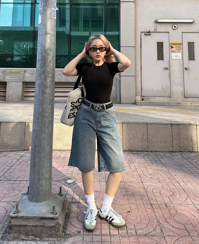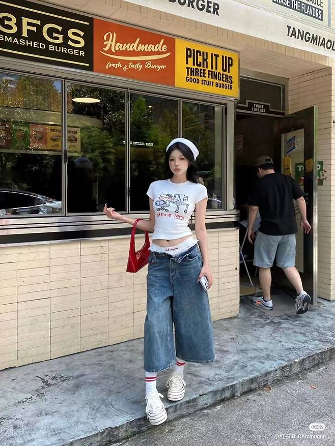 ✔ 하이웨이스트 하의와 크롭 상의 조합은 가장 기본이면서도 효과적인 비율 보정 공식이에요.