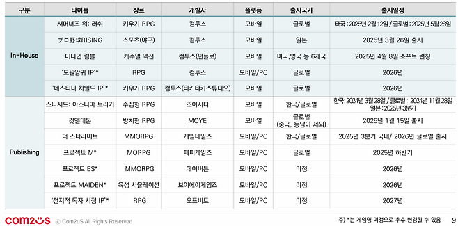 이와 함께 '전지적 독자 시점' '도원암귀' 등 글로벌 인기 IP 기반 게임과 유명 개발자 김대훤 대표가 이끄는 에이버튼의 첫 MMORPG '프로젝트 ES'를 비롯해 '데스티니 차일드' IP 기반 키우기 게임도 선보일 예정이다.