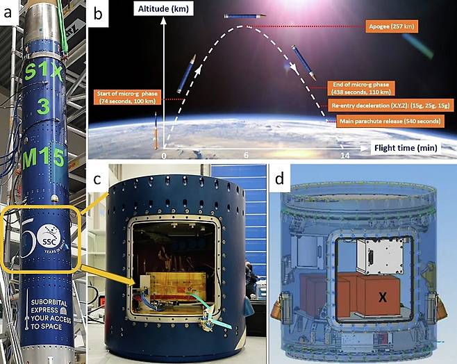 연구팀은 고초균 아포를 캡슐에 넣어 로켓 페이로드에 탑재하고 실제 우주로 내보냈다. 로켓이 발사할 때 가속력 때문에 페이로드에는 지구의 13배 중력이 발생했고 고도 약 260㎞의 우주공간에서는 약 6분간 미소중력상태(거의 무중력)가 유지됐다. 이후 지구 재진입 시에는 최대 30G의 중력에 초당 220회의 초고속 회전이 더해졌다.
