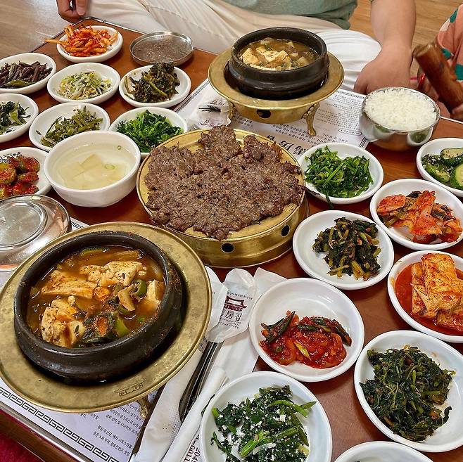 합리적인 가격에 풍부하고 다양한 반찬을 먹을 수 있는 서울 '툇마루밥상'. 정갈한 유기그릇에 소복이 담겨 나오는 반찬은 간장게장을 비롯해 잡채, 수육, 뚝배기 불고기, 찌개, 각종 나물과 생선구이 등 20가지가 넘는다. 개인 솥에 나오는 솥밥은 예술이라는 말이 절로 나올 정도로 윤기가 흐르고 밥맛이 좋다. 기본 구성도 훌륭하지만 추가 메뉴인 황태구이나 목살 양념구이를 추가하면 더욱 푸짐하게 먹을 수 있다.
