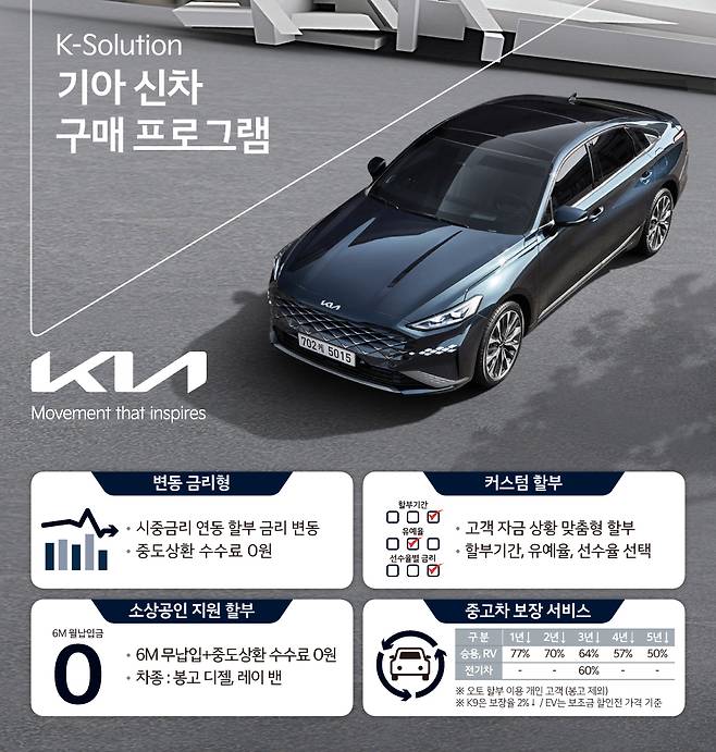 기아는 '변동금리형 할부'와 '커스텀 할부' 등 다양한 신차 구매 프로그램을 출시했다고 2일 밝혔다.