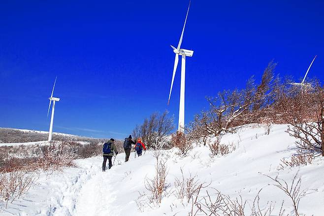 해발 1,157m의 선자령은 대관령의 고원 지대에 위치해 있으며, 겨울철에는 눈 덮인 언덕과 하늘을 찌를 듯한 송백림이 장관을 이루는 곳입니다.
